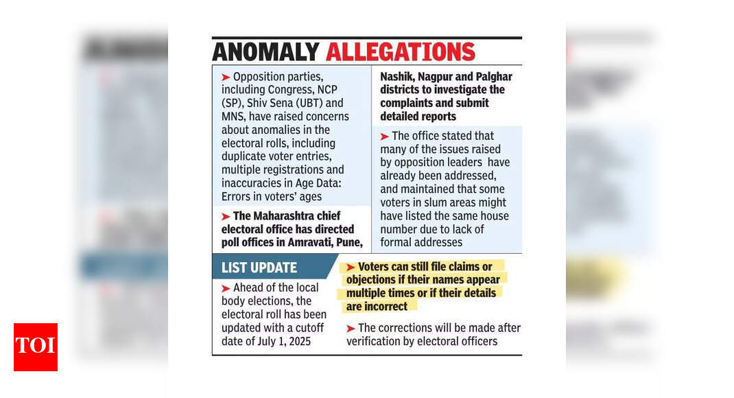 पुणे: महाराष्ट्राच्या मुख्य निवडणूक कार्यालयाने अमरावती, पुणे, नाशिक, नागपूर आणि पालघर जिल्ह्यांतील मतदान कार्यालयांना मतदार यादीतील ‘विसंगती’च्या विरोधी पक्षांच्या तक्रारींची सखोल चौकशी करून तपशीलवार अहवाल