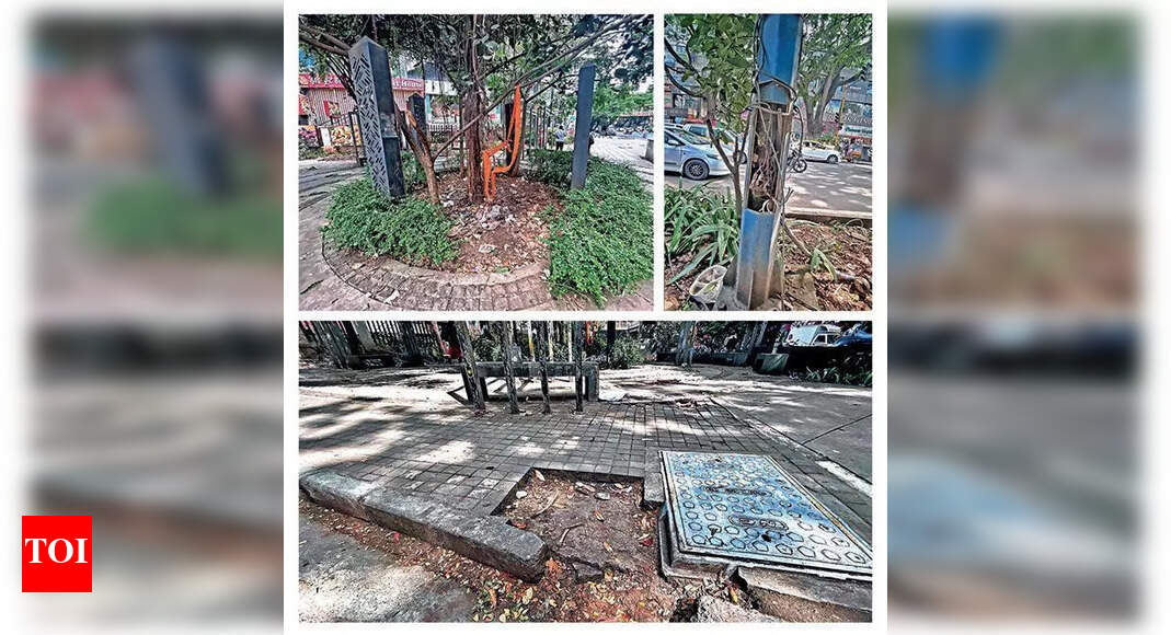 ‘स्मार्ट’ नाही: जेएम रोडवरील हा फूटपाथ दुरवस्थेने ग्रासला आहे