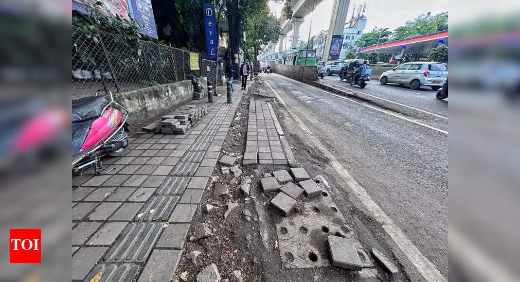 पुणे : शहरातील पदपथांवर चालणे हा कायमचा अडथळा बनला आहे. निकृष्ट टाईलवर्कपासून ते फेकण्यात आलेला भंगार, अनधिकृत विक्रेते, बेकायदेशीर होर्डिंग्ज, गहाळ पॅचेस, नादुरुस्त डीपी बॉक्स