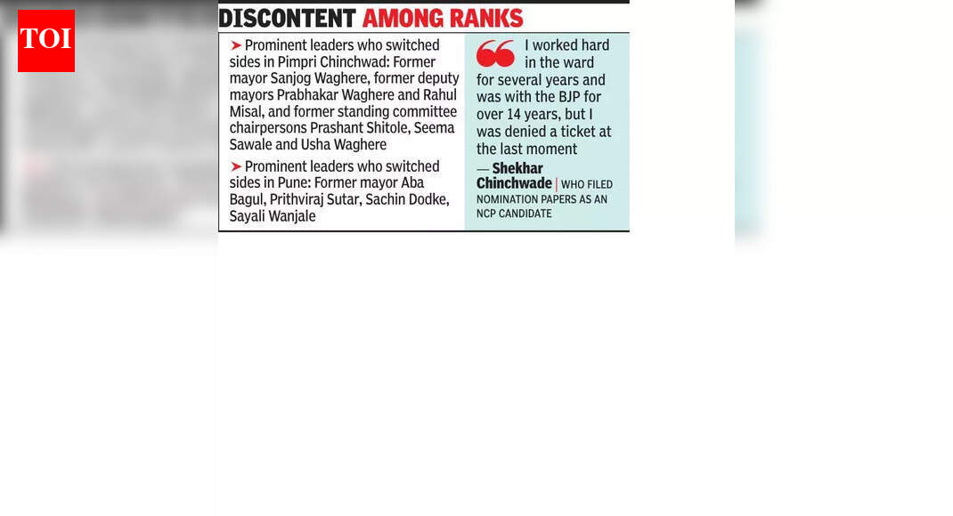 पुणे : पुणे आणि पिंपरी चिंचवडमधील भाजप आणि राष्ट्रवादीच्या अनेक कार्यकर्त्यांना आगामी महापालिका निवडणुकीसाठी प्रतिस्पर्धी पक्षांकडून उमेदवारी नाकारण्यात आली आहे.अनेक माजी नगरसेवक आणि आशावादी पक्ष
