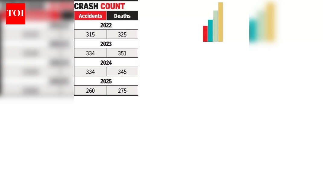 पुणे: शहरात वाढती वाहतूक घनता आणि गर्दी असूनही 2023 आणि 2024 मध्ये प्रत्येकी 334 आणि 2022 मध्ये 315 वरून 2025 (डिसेंबर 22 पर्यंत) जीवघेणे अपघात