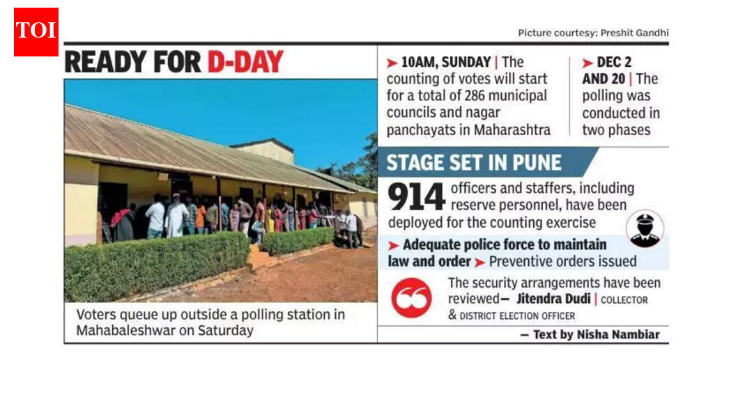पुणे : 14 नगरपरिषदा आणि तीन नगर पंचायतींच्या निवडणुकीची मतमोजणी रविवारी सकाळी 10 वाजता सुरू होणार असल्याचे जिल्हाधिकारी आणि जिल्हा निवडणूक अधिकारी जितेंद्र दुडी यांनी