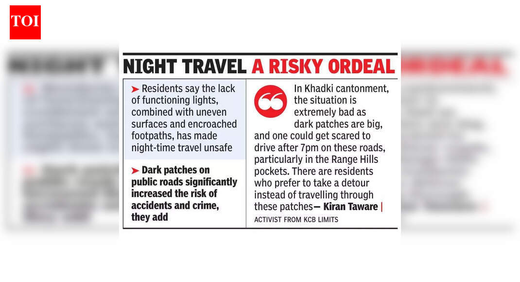 पुणे: पुणे आणि खडकी कॅन्टोन्मेंट भागातील मोठे रस्ते अनेक महिन्यांपासून अंधारात आहेत, ज्यामुळे हजारो रहिवाशांसाठी दैनंदिन प्रवास करणे कठीण आणि असुरक्षित बनले आहे.नागरिकांचे म्हणणे आहे
